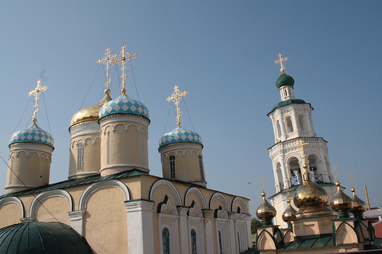 Vista del Kremlin con sus tres simbolos dominantes la catedral, la mezquita y la torre