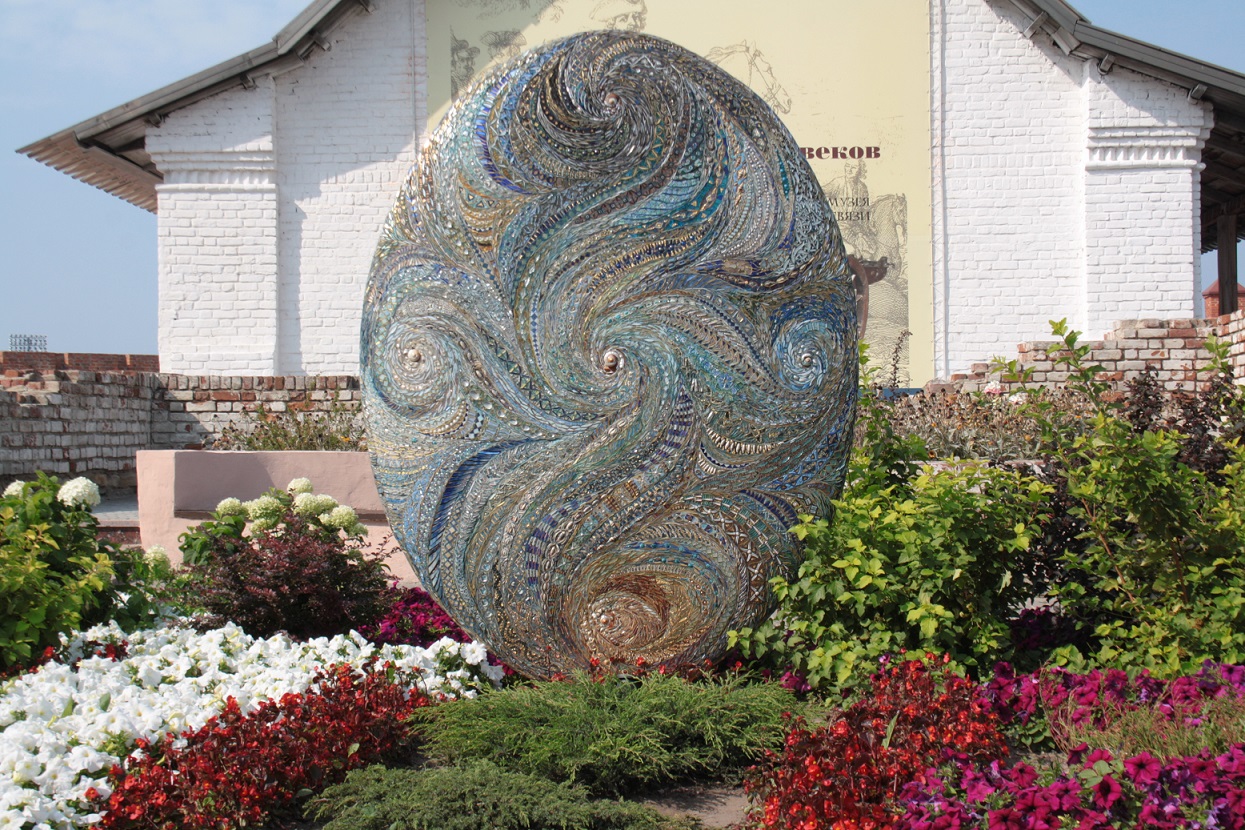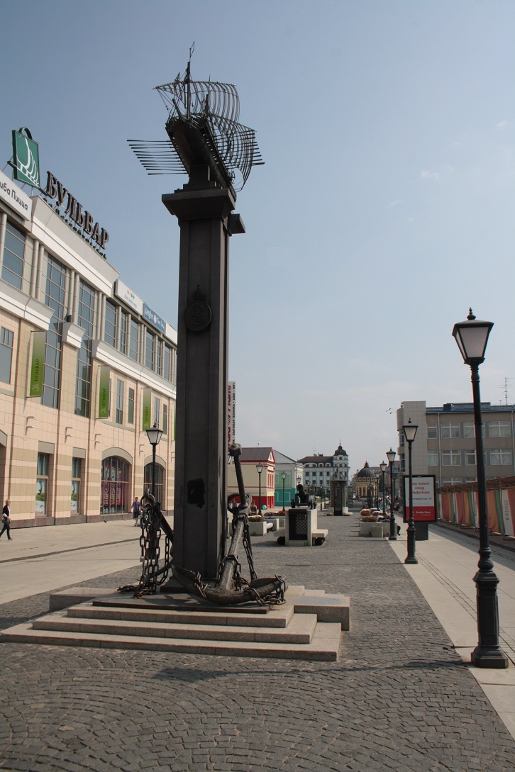 Estatua representando las antiguas galeras que navegaban por el Volga