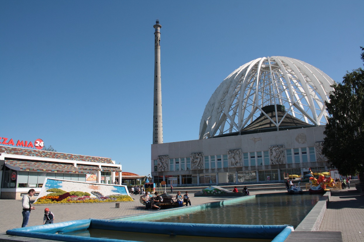 El edificio del circo con la antigua torre de televisión detrás