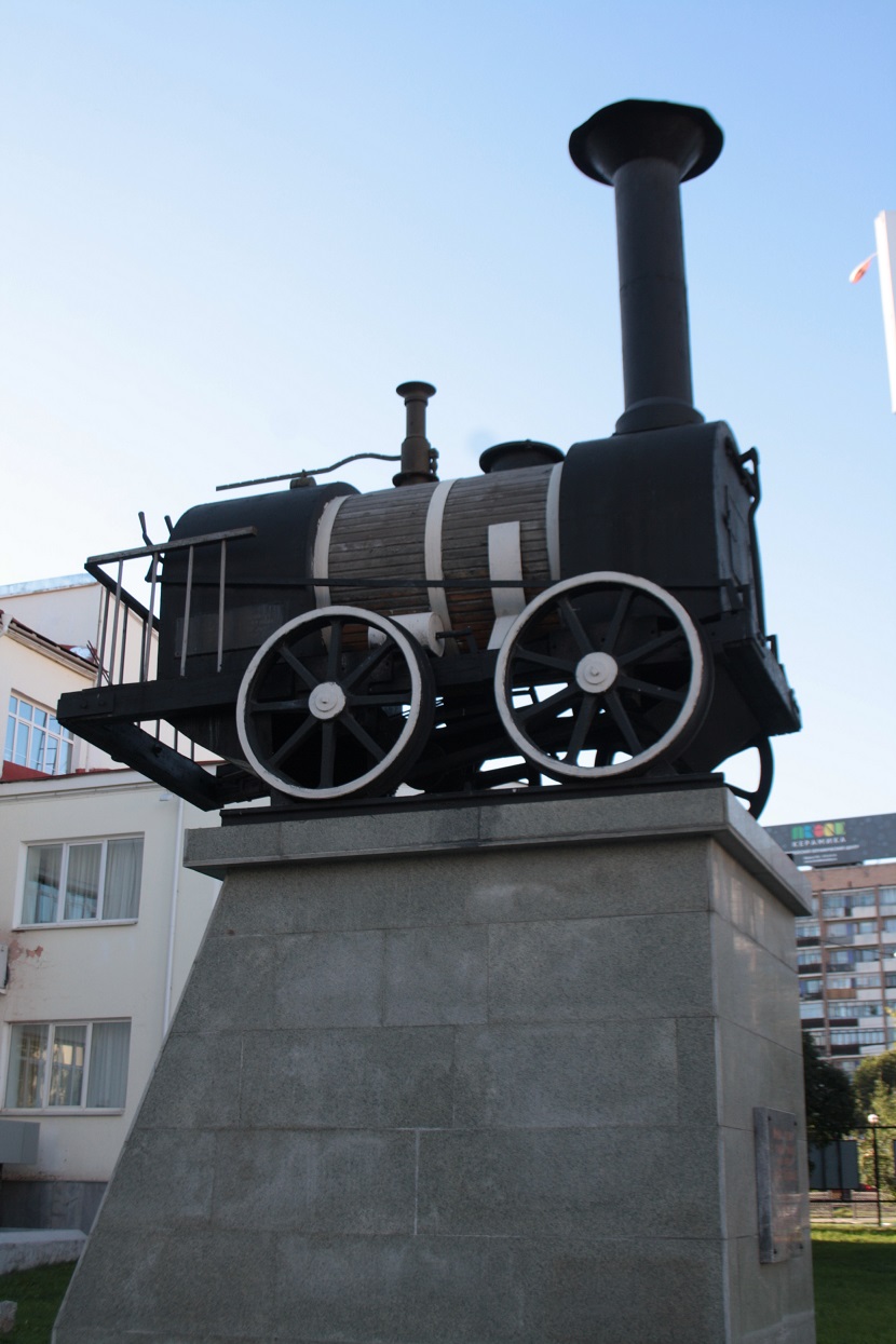 Pequeño monumento al tren cerca de la estación de trenes