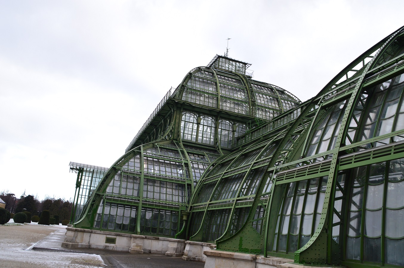 El domingo amaneció nevado y nuestro destino era ir a ver el palacio de Schonbrunn, el palacio de Sisi. Para acceder al mismo fuimos en metro hasta la estación del mismo nombre. Los jardines del palacio son inmensos e interesantes, en el se encuentra el zoológico más antiguo de Europa en funcionamiento, también hay varios pabellones con zonas desérticas, de jungla, podemos encontrar también un parque japonés, o restos ficticios de ruinas, laberintos, teatros de marionetas… creo que te puedes dar una idea de como de grande puede ser el parque. Para entrar en el palacio, lo mejor es hacer una reserva online y así no tienes que hacer unas colas tan grandes, al final debido a esto no entramos dentro, ya que perderíamos bastante tiempo