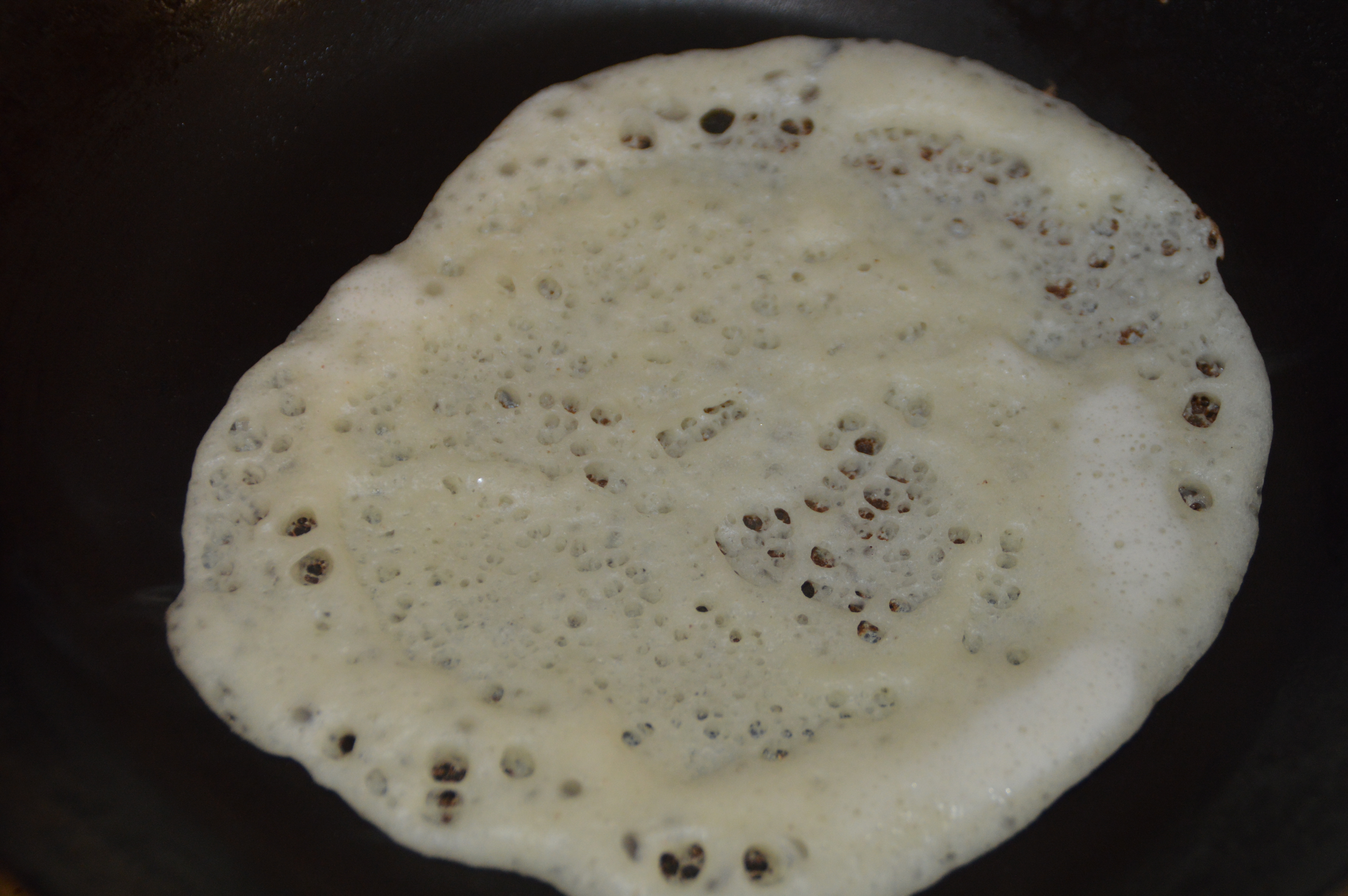 Lo que hace diferente este crepe de otros a los que pudieras estar acostumbrado son dos ingredientes, el primero es el uso de sémola y el segundo de levadura, lo que le dará su forma llena de burbujas.
